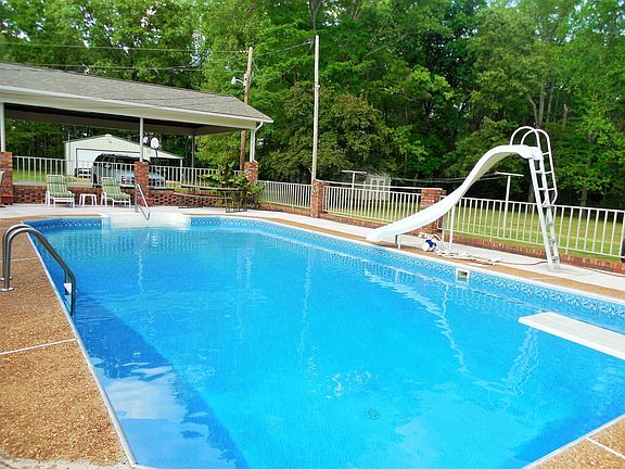 Beautiful brick ranch home on 12 acres with nice shop and in-ground swimming pool. Above average landscaping with paved drive. Large attached carport. 3 bedrooms, 3 full baths, den with fireplace, large kitchen, formal living and dining & large rec. room.