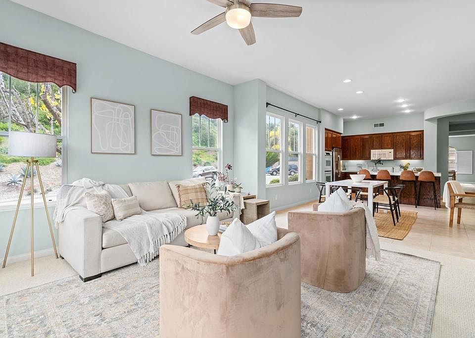 Better hurry! With a sunny corner lot, 3 bedrooms + office, and open concept great room in an amazing location, this Lowest Price Single Story in all of 92009 will not last! Excellent floorplan, low maintenace, and ready for your decorating ideas! Such a fabulous neighborhood, with resort like pool, trails, parks, and a short distance to Historic Carrillo Ranch. Close to Trader Joe's, Home Depot, Target, restaurants, and all conveniences. Please see private remarks for additional information.