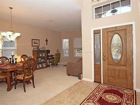 SHORT SALE. Welcome to Stoneybrook Hills?a gated community offering lovely homes and wonderful amenities. This 4/2 home is framed with manicured landscaping and mature trees and offers a large open back yard with no rear neighbors. Inside you will find a light-filled, open floor plan. The warm and neutral tones found throughout the home in the wall color, tile floors and carpet allow you to move right in without having to make time consuming or expensive changes! You will love the spacious, well-appointed Kitchen with beautiful wood cabinets and solid surface Corian counters. An abundance of cabinets, plus a large pantry will take care of all your storage needs. In addition to a separate Dining Room, this Kitchen provides even more dining space with a Breakfast Nook and Breakfast Bar. Glass sliders from the Family Room lead to a relaxing rear patio. The Master Suite also has private access to the rear patio and includes a walk-in closet and a gorgeous spa-like Bath complete with dual sinks, tiled shower and jetted tub. The two-story community Clubhouse beckons with a resort style swimming pool, fitness center, basketball court, baseball field, tennis courts, playground, plus paths for biking and walking. Just down the street is a newer Publix grocery store and don't forget you are but a few minutes from Lake Dora, charming shops and quaint cafes found in downtown Mt. Dora. All this plus easy access to the 429, Sanford or Orlando. Brokered And Advertised By: REAL LIVING ALL SOLUTIONS RE Listing Agent: LORETTA MAIMONE
