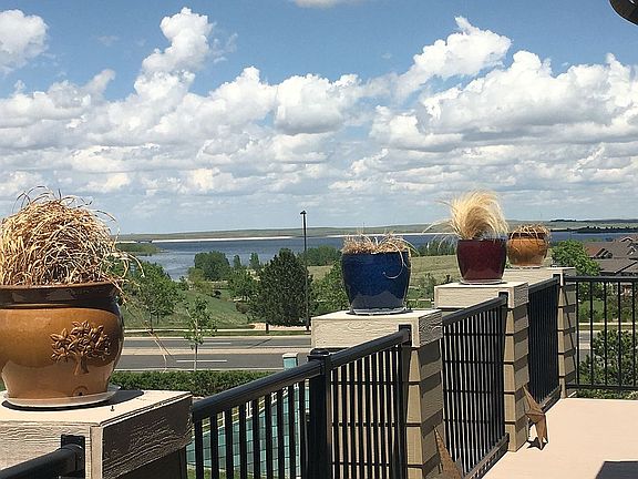 GORGEOUS WATER VIEWS of the Aurora Reservoir, over .25 of an acre at the end of a cul-de-sac overlooking open space, french doors lead to large trex deck with lighting. Vaulted ceiling, hardwood and tile flooring, White cabinets and stone backsplash with SS appliances and quartz countertops. Custom paint. WALK OUT basement is HUGE and has structural wood sub flooring, electrical box and a 220 Amp outlet already installed, (kiln, spa, welding equipment, craft room is possible!). 2 full size water heaters (one is new). Ceiling fans in every room. Fenced in yard with fruit trees and garden! Walking path behind the house leading to 2 parks and the Reservoir. South facing so snow melts quickly. Solar panels with power purchase agreement, Oversized 3 car garage. Front door has a screen/glass door combo. Close proximity to schools, shopping, clubhouse, parks, and beach. Brand new, expansive stamped concrete patio runs the full length of the home making for the ultimate outdoor living!