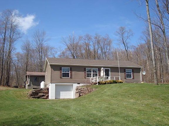 IT'S TIME FOR COUNTRY LIVING! Are you ready for that escape from hectic urban living? If the answer is yes then you need to see this location. There are no nearby neighbors in sight. Enjoy the countryside views from this private ranch on 8.5 acres. It would also make a great starter or retirement home. Entertain family and friends with the open floor plan. Kitchen features beautiful cabinets, nice master bedroom with attached bath, 2 guest rooms and 2nd full bath and large sun porch. Full basement with one car garage. There are several outbuildings including a shop/storage room, chicken coop and machine shed. A long, level driveway off of a paved town road leads to the home. The beautiful grounds include 2 ponds, one secluded and one for swimming and enjoying the views.