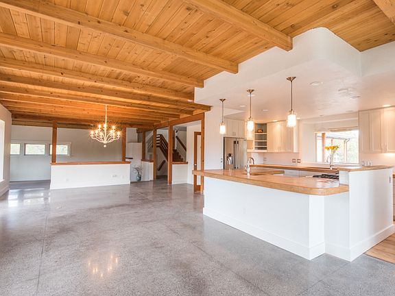 This custom home has 4 bedrooms and 4.5 baths. Large great room with lots of windows, children wing, huge bonus room and office.Master has a private deck with fabulous views of the Cascades. Home has unique features including stained concrete counters, floors and patio, attached two-car garage, radiant heating systems in place. A huge detached three-car garage/shop has a studio apartment too!