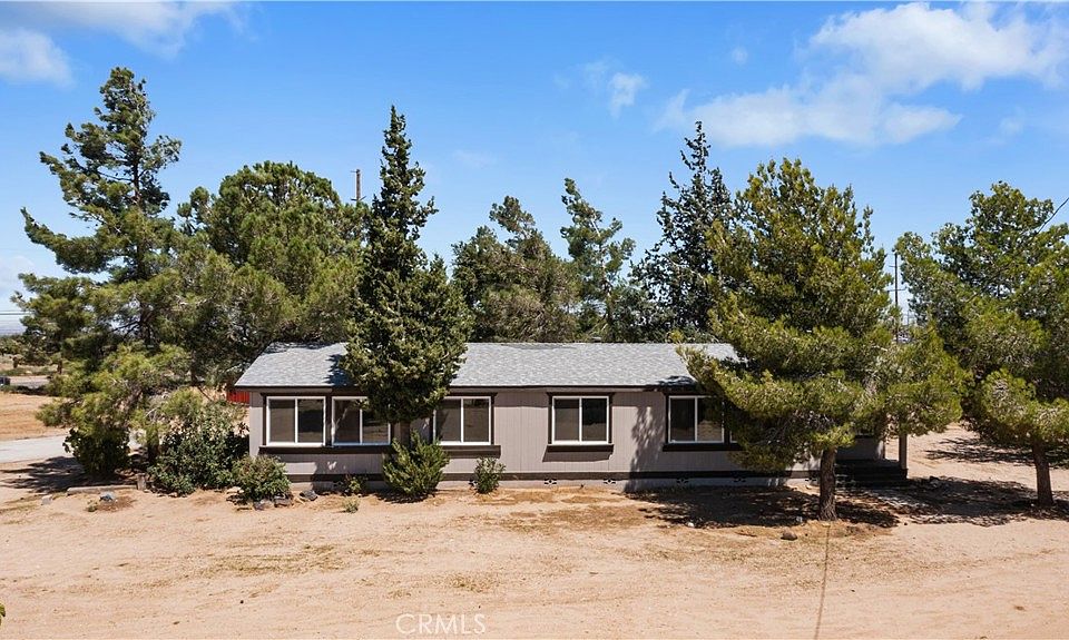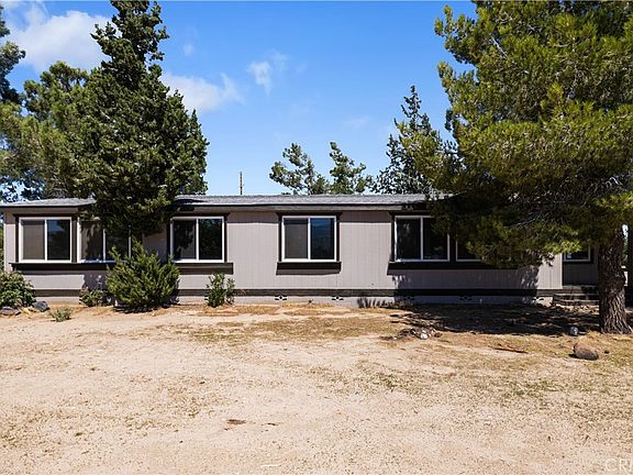 Clean and park like setting for this 3 bedroom and 2 bath manufactured home offering 1,620 +/- square feet of living space with a detached 2 car garage that backs up to Phelan Rd. You'll immediately feel invited when you pull up to this property that features many mature trees, open space and is completely fenced. Upon entering the home you walk into the living room that takes you to the open and bright dining area off the spacious kitchen. There's a separate dining area off the sliding glass back door. There is a free standing wood burning stove with a rock accent back wall. This fireplace needs the pipe stack and the ventilation through the roof to be servicable but would be a great source of additional heat and perfect for use through the winter holidays. Down the hallway there's a spacious laundry room with overhead storage that also has access to the hall bathroom. Bedrooms one and two are good size and share that hall bath. At the end of the hallway is the master bedroom with an oversized master bathroom. The home has been updated with new retrofit windows throughout making the home more energy efficient and also has new exterior paint. Out the back of the home is a large concrete patio that runs the length of the home which is a great space to entertain or unwind at the end of the day. The detached garage provides plenty of space to park vehicles or store extra belongings. The property is 1.88 +/- acres and is manicured in a way that makes it feel even larger. Property has 2 drive through gates making it a breeze for access regardless of the size of the vehicle. Property is zoned for horses and offers plenty of space for barn and corrals. There is quick and easy access to Phelan Rd, has beautiful views of the San Gabriel Mountains to the south and is located in the Snow Line District.