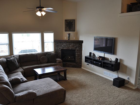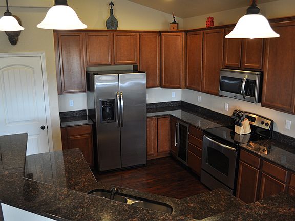Stucco with stacked stone. Extended insulated 3 car garage. Hardwood floors, granite counter tops, tile baths. Un-obstructed mountain view, A/C, vaulted ceilings, finished basement.