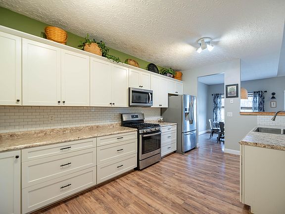 Beautiful Open Plan Perfect for Entertaining Featuring Elevated Ceilings & Deck Overlooking Fenced-in Yard w/Pool*Kitchen Offers Solid Surface Counter Tops & Abundant Cabinet & Counter Space*Living Rm Features Cozy Fireplace, Cathedral Ceilings & Walk-out*Sizable Owners Suite w/Adjoining Private Bath*Fourth Bedroom Could Serve as Hobby Rm/Study*Unfinished Lower Lvl has Walk-out & Partially Finished Spacious Room*No HOA*Within Walking Distance of Idlewild Park*Short Drive to Burlington Dining & Shops