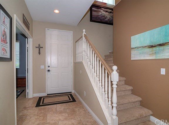 This beautiful home with a lovely floor plan offers tremendous charm and living comfort that make you feel warm welcome the moment you enter. A cute front porch surrounded with professional landscapes leads to an open floor plan that features a great room with custom paint, recessed lights, ceiling fans, and handsome tile floors throughout. Kitchen has gorgeous granite counter tops, large center island and lots of cabinet space. The dining area opens to an over-sized covered patio with slate tile extended to both side yards. The main floor bedroom with double door at the entry is an ideal place for a home office. The well-designed upstairs landing has two nice sized bedrooms with a hall bath on one side, inside laundry room with sink in the middle, and a hall with linen closet leading to the master bedroom. Master bedroom in beautiful custom paint color has large walk-in closet, dual sinks, and separate shower and tub. The large covered patio in backyard offers generous space for hosting summer parties in the shade. Large grass area for kids play. 3-Car tandem garage with an additional garage door open to backyard. This home is equipped with solar panels you will appreciate. Wonderful neighborhood in a great location, within walking distance to Harada Elementary,and close proximity to Harada Heritage Park, middle & high schools, community center, shopping centers, and freeway. This is truly a home you will love to be its new owner. Call Now!