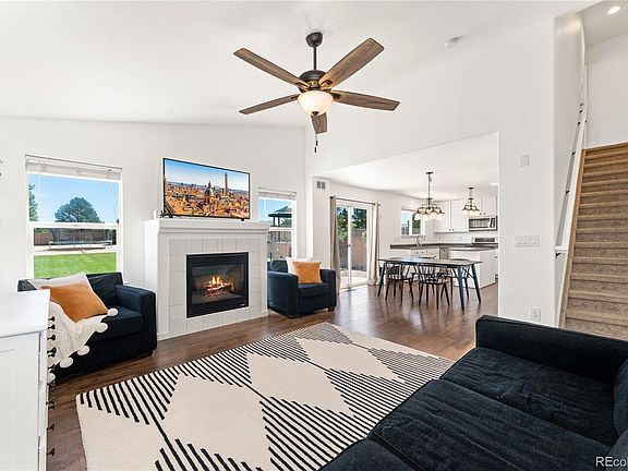 Beautiful and bright two-story home in Castlewood Ranch! This radiant and impeccably maintained two-story residence offers 4 bedrooms, 4 bathrooms, and a finished basement for extra living space. The open and airy main level features a vaulted ceiling and a cozy gas fireplace in the family room, creating an inviting atmosphere. The kitchen delights with recessed lighting, stainless steel appliances, a pantry, a butcher block island, and an adjacent dining space. Upstairs, the generously sized primary bedroom includes a large walk-in closet and an ensuite bathroom with dual sinks. Two additional bedrooms and a full bathroom complete the upper floor. The finished basement is a versatile space featuring a laundry area, a flexible den with built-in shelving, and a fourth conforming bedroom with an attached full bathroom. Step outside to the expansive backyard, a true highlight of this property! It boasts a large lush lawn, a fire pit, a storage shed, and a patio perfect for enjoying Colorado's beautiful outdoors. Recent updates include new exterior paint (2023), a new exterior AC unit (2020), a new concrete front porch and walkway (2021), new gutters (2023), and a new top-rated anti-hail roof (2023). This home is ideally situated in a quiet neighborhood with numerous parks and walking trails within a mile, offering a peaceful yet convenient lifestyle. You’ll be close to excellent schools, shopping, major highways, and a variety of restaurants. Don’t miss the opportunity to own this exceptional home with modern updates and a fantastic outdoor space!