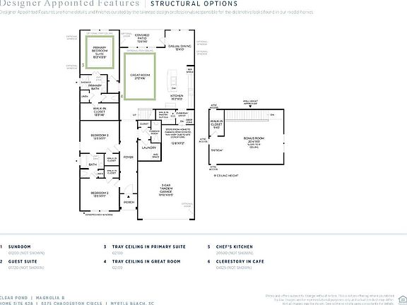 This Magnolia Plan offers an open concept with soaring 10ft ceilings on first floor, 3 bedrooms, 2 full baths, powder room and 2.5 car garage. Second floor includes 9 ft. ceilings, a large bonus room with closet, fourth bedroom and full bath. Design features include Chef's style kitchen, Quartz Kitchen countertops, tile backsplash, and more! Revwood Laminate flooring in main areas, double door entry into the Master Bath with tiled 5ft shower, tile floors, stainless appliances, and so much more! The garage is a wood workers dream with a tandem garage, that can be used as a workshop, golf cart bay, or extra storage! Security System with first 6 mos. of monitoring free, tankless hot water heater. Home is walking distance to resort style amenity center, which includes large clubhouse, state-of-art fitness center, 2 pools, walking/biking trail around a lake, and playground. See onsite Sales Consultant for Builder Promotions.