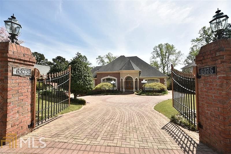 Gated Estate Setting Brick Trad. on South Lake Lanier, Open Flr Pln, Hrdwd Flrs, 2-Story Foyer, Frml Living Rm w/ FP, Banquet Size DR, Great Rm w/ FP, Wall of Windows w/ Panoramic View of Lake, Gourmet Kit., Breakfast Area Opens to Lrg Deck, Lrg Master Suite on Main Level w/ Sitting Area, Lrg Master BA w/ Dbl Sided FP, Upper Level w/ 2 BR, 2 BA, Full Finished Terrace Level, 2 BR, 1 BA, Rec Rm, Wet Bar, Patio w/ Hot Tub, Bckyrd w/ 150 Feet of Lakefront Gently Slopes to Deep Water SS Dock w/ Sun Deck, Att. 2 Car Gar., Detached 2 Car Gar. w/ Unfinished Guest House.