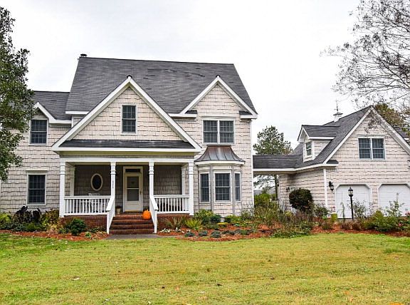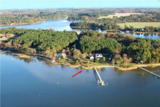 ABSOLUTELY GORGEOUS! This 2,800 sqft coastal style waterfront home offers huge views and good boating water.Sparkling inside & out with a freshly painted interior & professionally landscaped gardens. Custom features throughout include lovely knotty pine floors, custom cabinets with granite countertops & custom windows overlooking the water. Master suite offers a luxury bathroom and separate office/exercise room with large closets. Enclosed large porch overlooking the water just right for family cook outs. Separate guest suite located above the detached garage. Extensive dock includes water, electric, boat lift, fish cleaning station, HVAC almost new. Located at the end of a quiet country lane, this property captures the essence in waterfront living. Sq.ft, room sizes & acreage approximate.