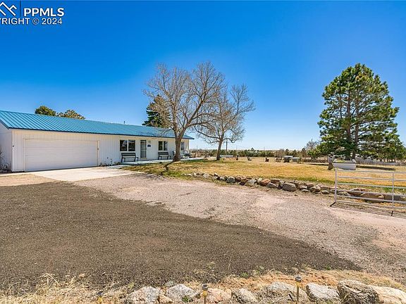 Escape to your own slice of Colorado paradise on 5 sprawling acres of picturesque countryside, boasting awe-inspiring mountain views that will take your breath away. Nestled just minutes from Power Blvd and Woodmen Rd corridors, this rare gem offers the perfect blend of rural tranquility and city convenience. Indulge your passion for cars and outdoor adventure with a massive 14-car detached garage, complete with drive-through access, heating, and ample space to store multiple RVs. This oversized garage is a car enthusiast's dream, providing the ultimate space to tinker, store, and explore. Inside, discover a newly remodeled kitchen with a large granite island and breakfast bar, perfect for entertaining against the backdrop of stunning mountain vistas. Two master suites offer luxurious comfort and flexibility, while the property's RR-5 zoning allows for multiple horses, with a loafing shed ready to accommodate them. Security and convenience are ensured with a completely fenced property and a solar-powered electric gate, providing peace of mind and easy access. The immediate surroundings are beautifully maintained with an automatic sprinkler system, enhancing the natural beauty of the landscape. Embrace the rarity of this offering, as 5-acre lots with such magnificent views are few and far between in the Colorado Springs area. Live a sustainable lifestyle by growing your own food. The numerous blackberries, strawberries, and raspberries are already started for you. Zoning allows for greenhouses and other agricultural use. With a hail-proof metal roof and unparalleled amenities, this property invites you to experience a one-of-a-kind residence in the shadow of Pikes Peak. Don't miss your chance to own this extraordinary property. Schedule a showing today and let the serenity of mountain living become your reality.