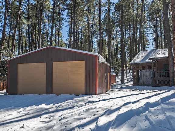 The kitchen has been thoughtfully updated with new cabinets, featuring ample storage space and upgraded appliances. You will love the wood tile flooring! This cabin has 2 bedrooms providing comfortable accommodation, along with an additional office/den space. Both bathrooms have been tastefully update. A large detached oversized 2 car garage provides plenty of space for your vehicles and additional storage needs. The well maintained house includes a new roof installed in 2014, recent exterior and interior staining/painting and replacement of bedroom carpet. The hot water heater was replaced in 2020.