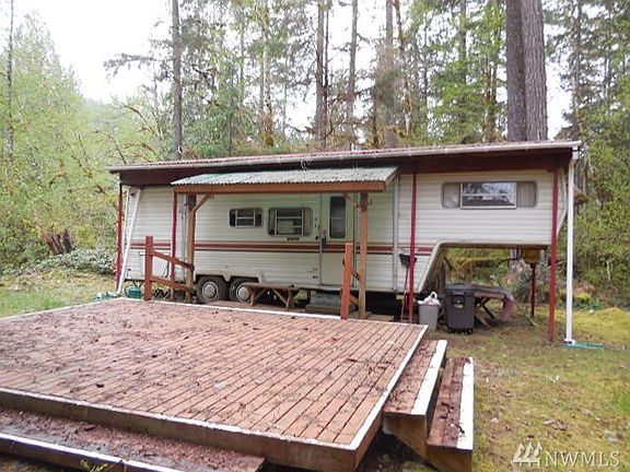 60' ON THE RIVER in the Cascade River Park. This lot has a 5th wheel trailer and a large deck right on the river. There are several storage sheds. Nice wooded lot to enjoy nature and to get out of the city.
