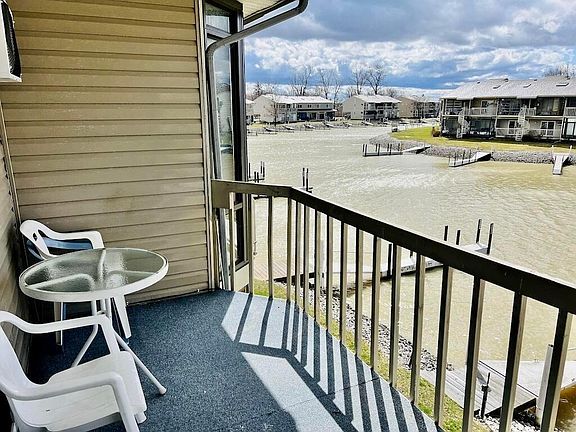 Newly remodeled condo on the shores of Lake Erie! 10' from the water! 30' dock! Sleeps 4! It's a one minute boat ride through the marina to get to the lake. The balcony overlooking the marina has a beautiful view! The bedroom is equipped with 1 queen size bed, dresser, 2 nightstands, ceiling fan, washer/dryer & large closet. The living room has a sleeper sofa, ceiling fan & access to the balcony. Kitchen has stove, refrigerator, microwave & breakfast bar with stools. Includes washer/dryer. All furniture, decorations & applainces stay. TV's do not stay. New washer/dryer, new flooring, new toilet, all new trim, freshly painted interior, all new decorations, new furniture, new A/C/Heater wall unit, new light fixtures & new ceiling fans. In-ground pool, fishing pond & fish cleaning station.