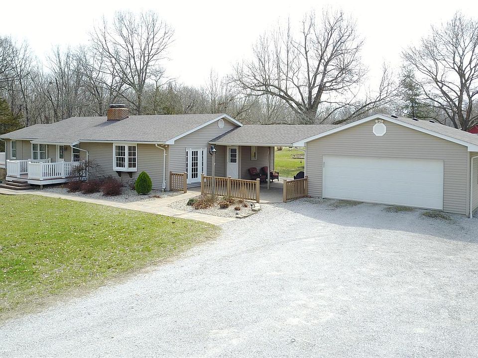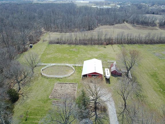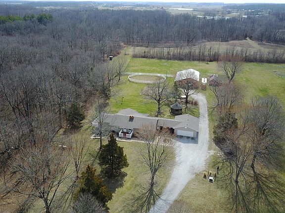 Country living at its best! This 3 bedroom, 2 bath home is situated on 6 acres just minutes from downtown Waterloo. You will enjoy watching the sunset from the gazebo in the back yard or the covered porch with paver patio. Once you enter the home you will immediately notice the fine craftsmanship of the woodwork and the full masonry fireplace. Large eat in Kitchen with loads of cabinets, breakfast bar, pantry and sliding glass doors that overlook the sun room. Spacious living room with double doors that lead out to the covered patio. Huge master bedroom with sitting room(that could be a master bath) extra large walk in closet and private deck overlooking the woods. Partially finished basement with additional family room and workshop with exterior door and extra storage space.Outside you will find a drive thru oversized 2 car garage (24x30), small shed as well as beautiful 30x50 barn with 10ft overhangs on the east and south side. Great property for horses or your favorite livestock.