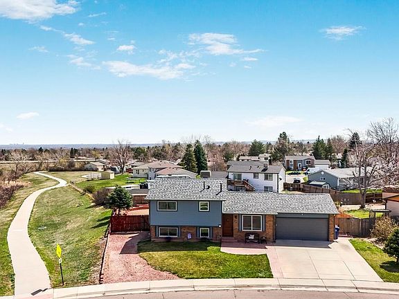 Hard to say what's better - The Location or the Home? Beautifully updated tri-level home with a partially finished basement is waiting for new owners to appreciate all the improvements made. This home has a fully remodeled kitchen with a large kitchen island, gorgeous cherry cabinetry, slab granite counters, a glass backsplash and a built-in banquette for additional seating. The lower level features a spacious family room with a gas fireplace, fresh paint, along with a third bedroom, 3/4 bathroom and laundry area. The upstairs features newer LVP flooring, a secondary bedroom along with the primary bedroom seamlessly attached via contemporary pocket doors to a converted bonus room that can easily be used as an office, nursery or possibly even a huge walk-in closet! The 3/4 bathroom features an updated glass subway tiled walk-in shower with separate floating vanity area. The basement is partially finished with new carpet, trim and paint, plus some unfinished storage. This home sits on a fantastic flat lot, directly across from Chief Colorow Park AND is alongside the Lilley Gulch Trail and open space. The fully fenced yard contains a wood-burning fire pit, sprinkler system, storage shed, workshop behind the garage with barn door access and a Trex deck that offers both a cover for the rear patio and spectacular views from up above. There is also an ideal spot for an above ground pool or trampoline, raised flower beds, along with a front porch area boasting a decorative stamped concrete design. The home also features a 2 year old Class 4 shingled roof, a three year old furnace, evaporative cooler and water heater. The assumable solar lease has only six years remaining plus the many added bonuses of newer Andersen windows and patio door, new ceiling fan, Leaf Filter gutters and a spacious two-car garage with shelving. All of this, plus being only minutes from Southwest Plaza, Clement Park, many restaurants and the Lilley Gulch Rec Center. It doesn't get better than this!