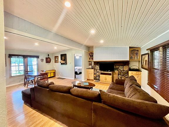 If your looking for a getaway at the lake with beach front access to a sweet little spot on the lake, tucked away in a beautiful cove, this is the spot! All paved roads just right off of HWY 10! Location is key! Detached 2 car garage and home has updated flooring throughout and fresh paint, just needs some TLC with a new family ready to make memories with!! Modular home is a 3 bed and 2 bath! There are a lot of possibilities to be had here, don't wait!!
