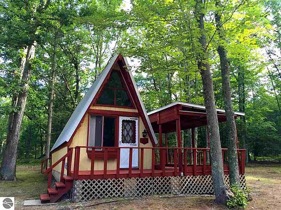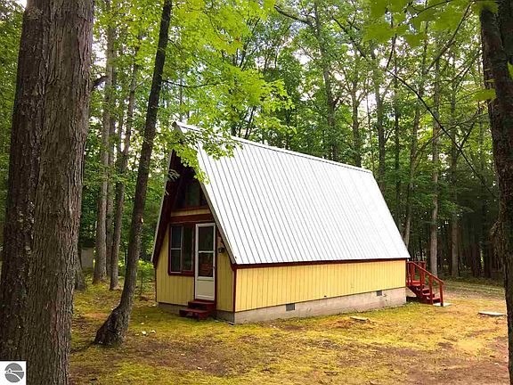 Perfect opportunity for Air B & B along the Betsie River right at the mouth opening up on Green Lake. Two classic A-frame chalets, a 36 x 48 pole barn and over 250' private frontage on the Betsie River, allowing direct access to Green Lake and a building site that is exquisite. Great possibilities as rentals, vacation get aways, temporary residences while building a dream home plus all the storage this vacation mecca property may need. Dock in the pole barn is included in the sale.