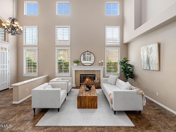 This beautiful Oak Park 4 bedroom + office home has everything you've been waiting for! Starting with the low-maintenance front yard landscaping with pretty drought-tolerant plants, the home has great curb appeal. As you enter the home, you are welcomed by a light and bright living room with soaring ceilings and a double staircase. You will enjoy cooking in the large chef's kitchen featuring a huge island with seating, granite countertops, desk area, stainless-steel appliances, and a walk-in pantry. Downstairs there is a bedroom and en-suite bathroom, powder bath, and a fantastic indoor laundry room. Upstairs the large primary suite features vaulted ceilings and a balcony with beautiful mountain views. The primary bathroom features dual sinks, soaking tub, oversized shower, and a two-sided walk-in closet. You will also find two large bedrooms with their own bathrooms and an office. The backyard is perfect for entertaining with a built-in outdoor BBQ, gorgeous pool and spa with waterfall and VIEWS. You will enjoy your backyard orchard which includes lemon, avocado, apple, plum, peach and mango trees. The home is close to the award-winning Oak Park High School and Medea Creek Middle School. Plus, only one block away is Deerhill Park with a large playground, tennis, pickeball, and basketball courts.