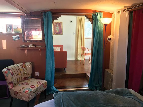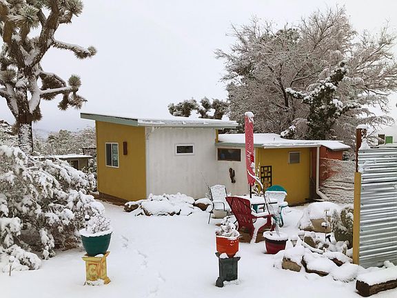 A Unique opportunity to practically live in the Joshua Tree National park, the west Entrance is about 3/4 of a mile south of this adorable artistically appointed cabin, It is perfect for a professional who can work from home with good quality,reliable internet, Writers, Artists and musicians have found it extremely inspirational. Several outdoor seating areas with expansive views of the beautiful environment are available, outdoor cowboy pool, BBQ grill, incredible hiking opportunities outside your front door. It is equipped with an evaporation cooler, Bath Tub, wall mounted flat Panel and mobile electric heating appliances, 2 burner stove top, toaster oven, toaster, coffee machine, pots pans and cutlery, queen bed, under counter refrigerator, fire alarms and extinguishers Pet access is negotiable but it is an unsuitable area for cats, Dogs are not allowed to remain in the cabin unattended. Utilities are included, however for a water faucet left open or heavy duty electric appliance creating extra ordinary extra costs, tenant will be required to compensate owner for overages, propane gas for cooking is the renters responsibility. No smoking in the building and all external smoking must be cleaned up, no dumping cigarette butts or other litter in the environment, outside gas grill is not to be used in high winds. No wall painting or furniture remodeling is permitted without prior approval. renter is responsible for repairs to items and appliances damaged