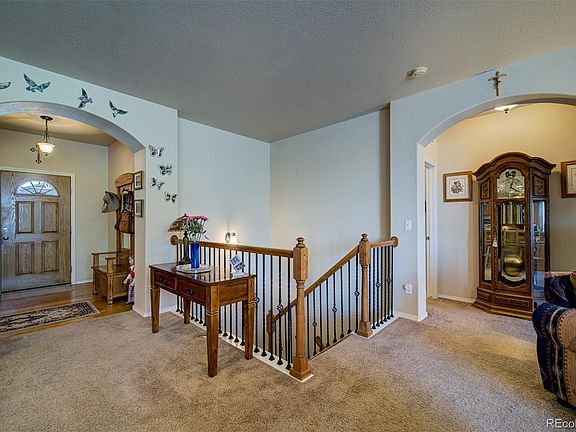 Subtle elegance awaits you at this gorgeous 5 bedroom, 4 bath, 2 car garage rancher located in desirable Indigo Ranch. Upon entering the home you will be greeted by hardwood flooring and the arched vestibule that leads you into the cozy living room with it's own gas fireplace and ceiling fan. Adjacent to the living room is the highly upgraded kitchen. The kitchen boasts granite counter tops, under mounted sink, breakfast bar for extra counter space, upgraded cabinets with hardware, crown molding, built-ins, back splash, stainless steel appliances, with a gas stove! Exploring further into the home you will find the main level master bedroom where you will find the house's best view of Pikes Peak. Master bedroom also has attached 5-piece bath with private jacuzzi tub and ability to walk-out onto the recently refurbished backyard trex-deck where you can enjoy mountain views and uninterrupted views of Black Forest. Main level of house also includes 1 more large bedroom, full bath, and laundry/mud room leading to garage. Walking down the stairs to the basement welcoming you is the spacious rec room with it's very own wet bar! The walk-out from the basement leads you to a covered tile patio where you can sit and enjoy the fully landscaped backyard and listen to the sounds of the installed water feature. The basement is also home to the hidden gem of this house: the 2nd master suite! The 2nd master suite has it's own attached full bath and walk-in closet! Basement also includes 2 more bedrooms and 1 more full bath! Sump pump and central vac are included upgrades at this home. Conveniently located near Powers, giving you easy access to anywhere in Colorado Springs; including easy access to both I-25 and HWY 83 giving you different commute options to Denver. This is the one you've been looking for!