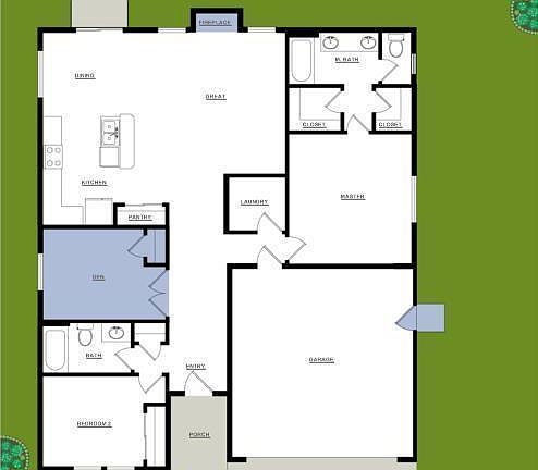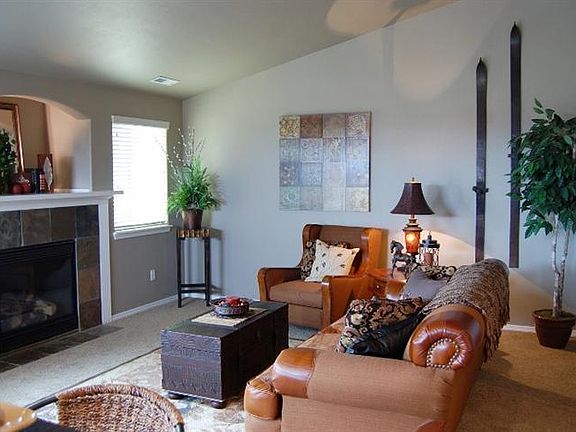 Open Edgewood floorplan. Upgrades include: Black GE kitchen appliance package with gas self-cleaning range, dishwasher upgrade, tile entryway, fireplace with alcove and tile surround, ceiling fan pre-wire, standup shower with glass enclosure, den option in place of bedroom three, interior two-tone paint, insulated garage and garage door, garage door opener, gutters and more.Vaulted ceiling in great room. BNSF railroad and Swalley underground Irrigation easements rear of the property.