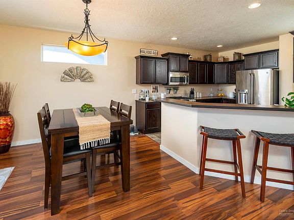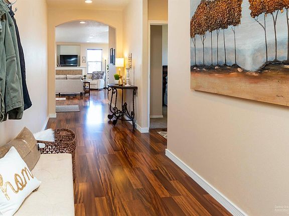 Charming & neat as a pin Single Level home offers bright & cheerful open floor plan with great separation between the master suite & guest bedrooms. Cozy great room with gas fireplace & peek-a-boo mountain views opens to dining room & beautiful kitchen with warm dark wood cabinetry, 5 burner gas cook-top, stainless appliances, & breakfast bar. Stay cool in the air-conditioned indoors & enjoy backyard bbq's on the patio of your spacious fenced backyard. RV parking & storage shed on landscaped oversized lot.