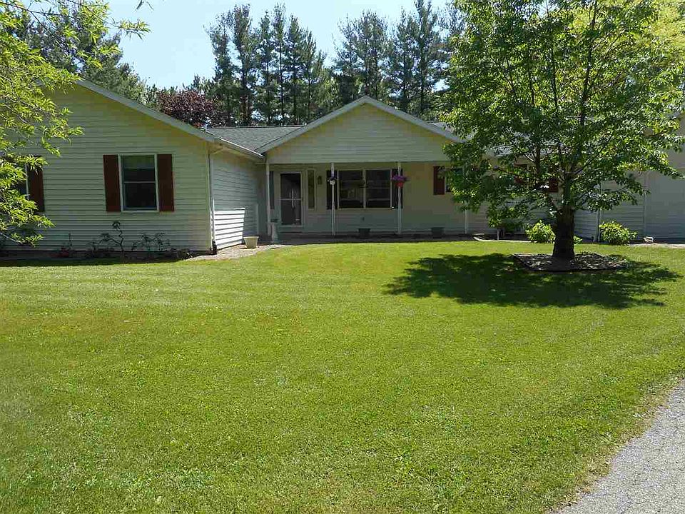 Beautiful, private wooded location with apple, pear and black walnut trees along with wild black raspberries and black berries. Trees surround the home for a park-like living experience on 10 acres. Many flowering trees and bushes. House remodeled to more open concept in 2010 with all carpet on main floor replaced with hardwood and ceramic tile floors. All bathroom and kitchen counters updated with Corian. All stainless steel appliances on main floor. Large family room, formal dining room, large kitchen with breakfast nook, pantry and more cabinets than one family needs! Three season sun porch with patio access. Mostly finished basement with laundry room, utility room, small appliance storage closet, 17 ft. seasonal apparel storage closet. Basement includes two sinks, older refrigerator and microwave. Bright, sunny exposures throughout the main floor of the house. Automatic stand-by generator provides relief during stormy weather. Two-car attached garage plus a 960 sq ft pole barn. If you like nature, wild animals or want an opportunity to live off the land, here is your chance! Agents see remarks!