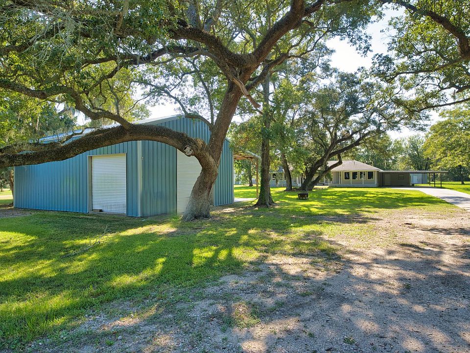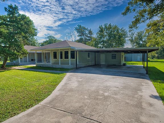 Looking for Country Living close to town out of the flood zone? Ranch Style home has covered deck all around the front to relax & enjoy nature's wildlife and birding. This roomy home features unique, engineered wood & beamed ceiling in the living room. The u-shaped kitchen has plenty of cabinets & counter space, nice sized pantry, plus an Island cabinet in the middle. All appliances included. The split floorplan offers 2 primary bedrooms with bath on each side of the home, and the 3rd bedroom also has a full bath; Plus, a convenient half bath. Outdoor features include the concrete driveway, oversized attached carport, a metal workshop out back. Newer 30 x 40 Pole barn on a slab at the front of the property with 4 rollup doors, single door & awning. The 1.42 acres has no restrictions, so you have lots of options for its use such as to start a garden, raise show animals, chickens, or just fun playing sports. Drive out today to explore the area.
