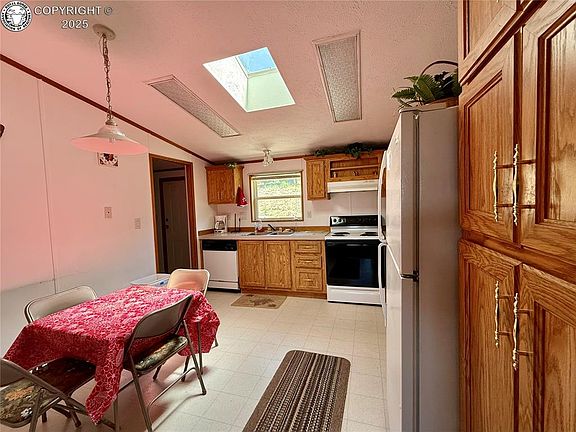 Take a look at this picturesque mountain property! While this home is turnkey, the possibilities for improvements are endless! NO HOAS AND NO PROTECTIVE COVENANTS! Situated on a seldomly used dirt road, with juniper trees dotting the property, this home offers privacy and peace away from busy life. Enjoy overlooking the Sangre de Cristo mountains while you sip coffee from the front deck and watch Fido run in the fully fenced front yard. Enjoy watching the lush wild grass blow in the summer sunsets. Spend lazy Sundays reading under the log covered breezeway or enjoy your favorite hobby in the oversized garage with workbenches and tool boxes. Watch over the valley from the entire front side of the home, with dynamic views when the storms crest Pikes Peak! Featuring three spacious bedrooms inside the home and a cozy fire place in the living room, everything about this property says “relax”! The master bathroom includes a large dressing closet as well as soaking tub and stand-alone shower. Skylights and large windows flood this home with tons of natural light; just add clean mountain air and a good afternoon breeze for the perfect tranquil getaway…everyday! This home also comes furnished if you’d like a turnkey Airbnb property! There is an additional lot across 19th Trl for sale by same owner. The Quonset hut is on that property.