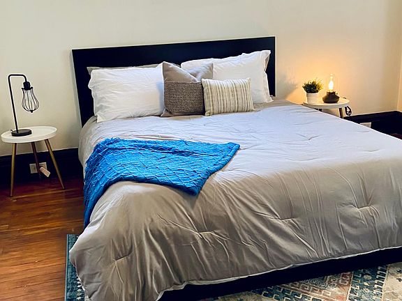 This gorgeous 2 bedroom home has been newly renovated and recently updated with modern furniture and exceptionally comfortable beds. Our home is fully fenced in for privacy and security, both front yard and back yard. The home includes 2 bedrooms, 2 bathrooms, a long driveway for multiple cars, a living room, a dining room and professional kitchen, and a large back patio and backyard with BBQ grill. The home has lots of storage space. The home is equipped with brand new central heating and air conditioning, super high speed 1000 Mbps high speed internet access, and Netflix included. Nespresso coffee maker, drip coffee machine, and electric water kettle available for tea and hot drinks. BEDROOMS: This home includes 2 spacious and quiet bedrooms. Bedroom 1 - The master bedroom is on the ground floor, with a large walk-in closet and en-suite fully renovated bathroom. The bedroom has a comfortable queen sized memory foam mattress bed. Bedroom 2 The second bedroom is spacious and has two large windows over-looking the mountains and the front yard, with an antique Singer sewing machine. The bedroom has a comfortable queen sized memory foam mattress bed. BATHROOMS: This house has 2 full bathrooms, each with plenty of storage, excellent water pressure, and comfortable amenities and toiletries. Bathroom 1 - This newly-renovated bathroom is en-suite to the master bedroom, with a spa-like extra-large tub/shower and modern touches. Bathroom 2 - This newly renovated bathroom is towards the rear of the home, is extra-large with a spa-like bathtub and stand-in shower. LIVING ROOM: Moody designer paint is the backdrop of a professionally designed living room. Genuine leather ultra comfy sofa, and two accent chairs. 48 inch Smart TV connected to Roku and Netflix already logged in. This space can be converted into a makeshift sleep space with our queen sized air mattress. KITCHEN: Professional kitchen with butcher block countertops, fully stocked with professional knife set, high end non-stick pots and pans, full size refrigerator and dishwasher. This space also doubles as a small dining room, with a dining table for 4 that can extend to seat 6. Stove, microwave, toaster, and coffee bar with Nespresso machine The kitchen has everything you need to cook up a meal or take a short stroll to one of the local restaurants in the historic part of the town. You're welcomed to use this space as a dedicated workspace as well. BASEMENT: Free laundry! Washing machine and dryer included in this spacious basement. Extra storage for all of your luggage and snow gear, or mountain bikes. BACKYARD PATIO: Backdoor leads you to a spacious private patio, with beautiful nature views. Utilities are paid by the tenant