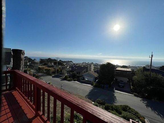 Stunning ocean views from this 2 bedroom, 2 bath home on Marine Terrace in Cambria. Freshly painted inside & out, two decks with 180 degree views, Cathedral ceiling and an open concept make great use of space. The living/ dining / kitchen area are on a loft which looks down on to the living room. The bedrooms are at the south end of the house for lots of privacy. The primary bedroom has the en suite full bath, walk in closet and separate vanity. The private deck has the same 180 degree water view. You can listen to the waves through the sliding glass door at night. What a relaxing way to drift off! The guest bedroom offers the same window view, nice closet and is across the hall from the other bathroom. From the main level, down the stairs to the attached garage, there is plenty of storage space, washer & dryer, and room for two cars. This is a soulful Cambria cabin waiting for the right person to love it up. Pets will be considered on a per applicant basis, must have excellent credit and rental history . No cosigners allowed.