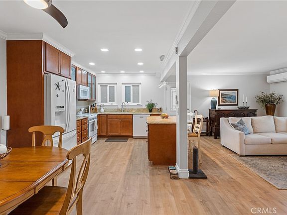 Welcome to a one-of-a-kind offering in the heart of Laguna Woods, where luxury living meets the tranquility of nature. Nestled along the serene Aliso Creek, this rare gem unveils a seamless blend of comfort and sophistication and provides the utmost convenience. Discover the epitome of single-level living, where every feature has been meticulously crafted for an unparalleled lifestyle of ease. Glass door entry leads to open floorplan living room with crown molding. Remodeled kitchen includes recessed lights, granite counters, newer white appliances, newer cabinets complete with glass paneled shelves with interior lights, self-closing drawers and lazy susan. Contemporary lighting over center island that was specifically designed wide to accommodate wheelchair access to the kitchen. New slider doors lead to the tiled and enclosed patio with panoramic views of the upper creek banks and slope. Windows have been tinted. Master bedroom/bath has three closets, one with custom lighting, remodeled vanity and tiled shower. 2 new Mitsubishi mini splits have been added recently. Second bedroom also has slider access to the panoramic view enclosed patio. Indoor laundry with washer/dryer included! Carport is conveniently located near the ramp down to the unit!