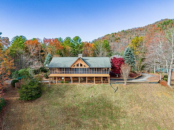 Looking for the perfect family home with room to grow? This 4-bed, 3-bath ranch-style home offers just that and more. Located on a spacious 7.97-acre wooded lot with breathtaking mountain views, you'll enjoy privacy and natural beauty every day. Inside, the home boasts 3,352 square feet of living space, featuring a cathedral ceiling and fireplaces on both levels that create a warm, inviting atmosphere. The open family room on the lower level is perfect for gathering, while the bonus room provides additional flexibility, whether you need a home office, playroom, or extra guest space. You'll appreciate the abundance of closet space throughout the home. Plus, the spacious kitchen is ideal for preparing family meals. Relax and enjoy the outdoors from the enclosed front porch, the screened rear porch, or the covered decking on both sides of the home. With a detached garage and several outbuildings for storage, there's no shortage of room for your tools, toys, or hobbies. This home is not just a place to live—it's a lifestyle. Situated just a short distance from Hayesville's local attractions, you'll have everything you need for both relaxation and adventure. Don't miss the opportunity to call this exceptional property home!