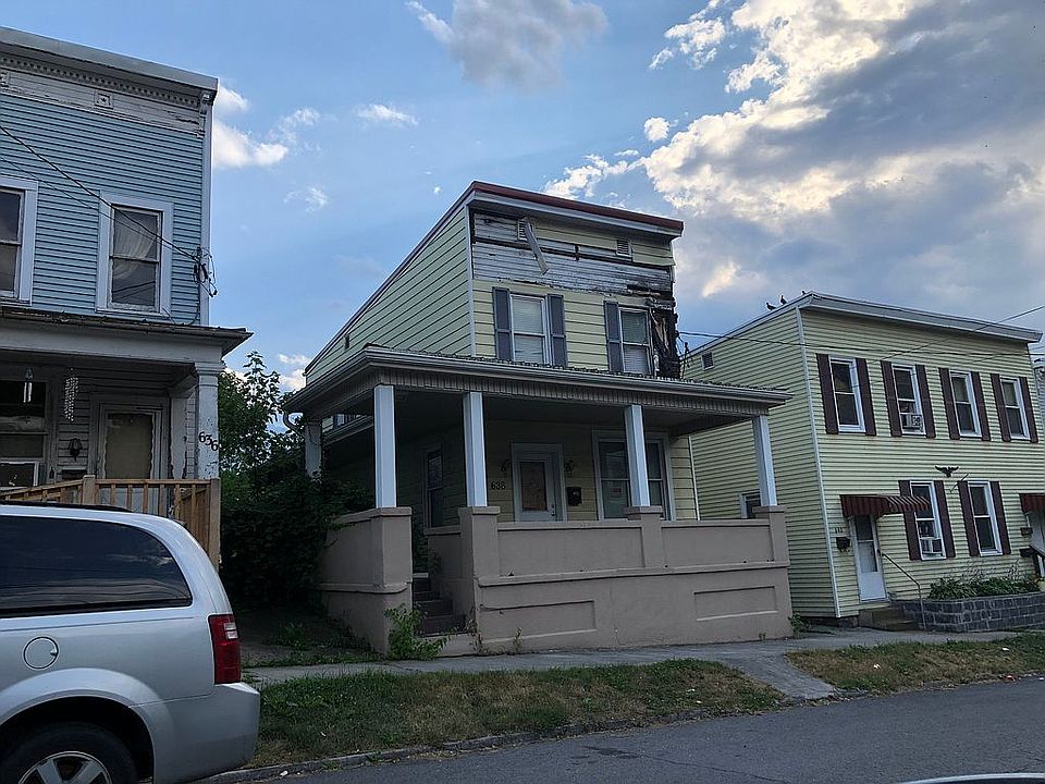 Two bed, one bath, two story fixer-upper with unfinished basement. Off-street parking, newer roof, concrete porch. Some light fire damage, mostly limited to second story exterior.$7500 OBO.