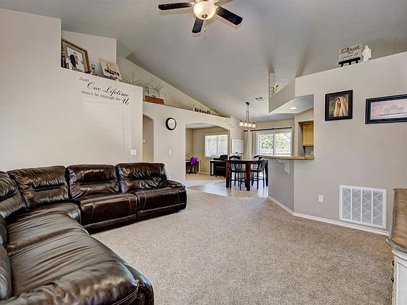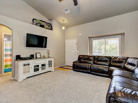 So Much Room to spread out, relax or entertain. In this open floor plan the kitchen is centrally located between the bedrooms, living room and family room. Newer carpet throughout with thick padding. Master Tub/Shower recently remodeled. New Exterior paint in 2021. Fully fenced backyard keeps pets and kids safe and secure. Front yard is home to a delicious strawberry patch! Located close to Parks, The Village, Grocery Stores, the Meridian Bike Trail. BTVAI
