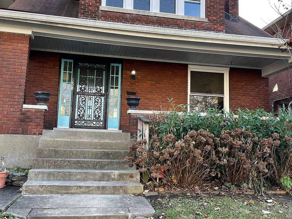 Awesome 1920s brick house for rent with lots of vintage charm! Three upstairs bedrooms. One bedroom is small and would be ideal for an office or kids room. All three bedrooms have large closets. Hardwood floors throughout the house. Tile in kitchen and bathroom. Large basement has a washer and dryer and lots of room for storage or whatever else you want to do down there. Large front porch, back deck, and fenced backyard. Off street parking on alley. Available December 16th. Renter responsible for all utilities. Pets less than 20 lbs allowed with $50 monthly pet rent. No smoking.