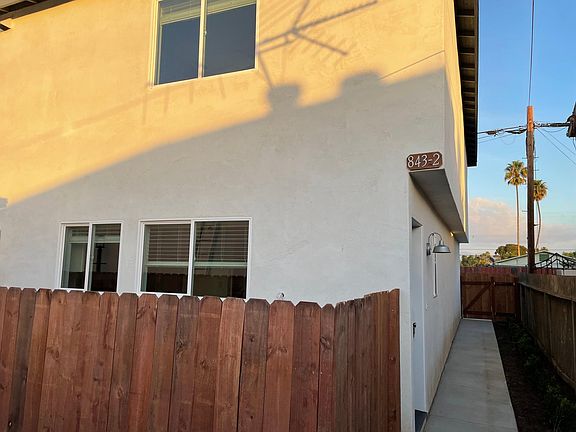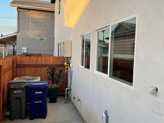New Construction: 3BR 3.5 BA 1200 sf unit and full two car garage with amazing location approximately 1.2 miles to the beach and .5 miles to the bay. The unit offers a beautiful kitchen with clean white cabinetry, spacious pantry, new stainless steel refrigerator, oven, dishwasher, garbage disposal and fixtures. Each bedroom has its own full bathroom featuring new cabinetry, bathtub and new fixtures. Other features include air conditioning, ceiling fans and new in-unit washer and dryer with solar panels to help keep utility costs down. The exterior features new stucco and a small private fenced patio. No smoking allowed. Tenant pays for gas & electric (solar panels keep these costs low) and landlord pays for trash and water.