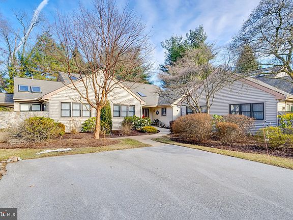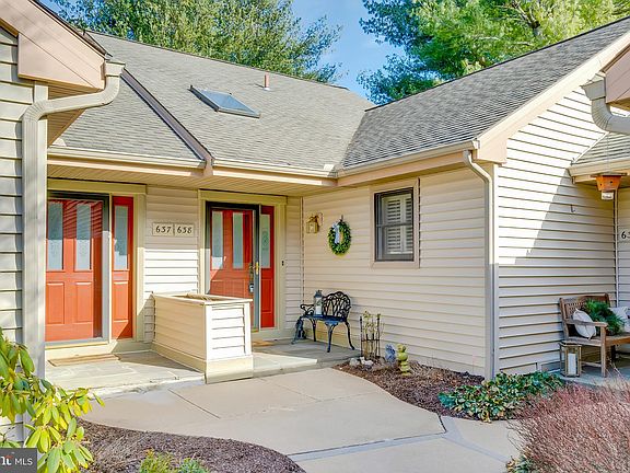 Welcome to 638 Glenwood Lane, located in Glenwood Village in the desirable community of Hershey's Mill. This Ridley model features two bedrooms and two bathrooms and has been well-maintained and lovingly cared for by the owner. This traditional home is filled with natural sunlight from numerous skylights and many windows with custom plantation shutters. The welcoming foyer leads to the open living room with a fireplace, vaulted ceilings, and skylights. Next, find the spacious dining room, which is open to the comfortable and cozy sunroom. The kitchen has wood cabinets and floors and updated appliances. There is a spacious breakfast room with doors leading to the private and oversized deck. The primary bedroom has a walk-in closet and en-suite bathroom with a stall tile shower and wood vanity with double sinks. The second bedroom with a large closet, hall bath with jetted tub and shower, single vanity, and laundry room complete this floor. There are hardwood floors throughout this level, with carpet in both bedrooms. The lower level is finished with a family room, office, and an abundance of storage with built-in shelving. A bonus 6’x6’ cedar closet is also located on the lower level. The spacious and private deck is perfect for quiet mornings or entertaining. This home has a one-car detached garage, driveway, and plenty of community parking. Hershey's Mill amenities include a Community Center, library, pool, tennis courts, wood shop, and walking trails. Golf course membership is also available for an additional fee. This home is a must-see!