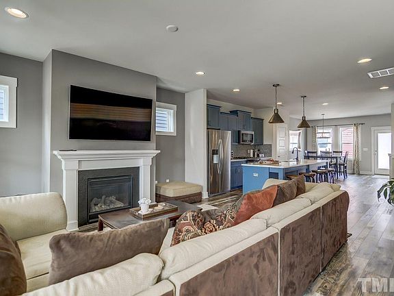 Immaculate & move in ready home in desirable Briar Chapel. Open floor plan. Distressed hardwoods thuout 1st floor. Spacious family rm features gas log fp. Eat-in kitchen offers quartz tops, center island, s/s appliances (gas range) & subway tile backsplash. All appliances convey! Master has accent wall, 2 walk in closets, double vanities & w/i tiled shower. Well landscaped, fenced backyard w/ irrigation (outdoor table stays). 2 car garage. Walk to schools. Enjoy all the community parks, pools & courts.