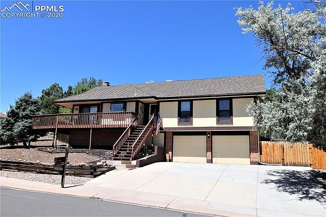 School district 20, Comstock Village subdivision. Right off of Rockrimmon. What else do you want or need? 4 bedroom, 3 baths with an oversized garage all on a nice corner lot. The location on this home is fantastic. The inside does need some love and care, yet you can work on it while living there. The master had an adjoining bath and lots of closet space. There are 2 more bedrooms on the main floor. In the downstairs you will find another bedroom, bathroom and family room. There is a wrap around deck for enjoying the wonderful skies of Colorado and just relaxing. There is also a large deck in the backyard. Roof was replaced in 2014 and the Furnace and AC was replaced in 2012. Don't miss this one. This is your chance for a great home with the right price.