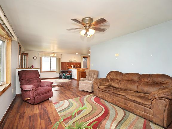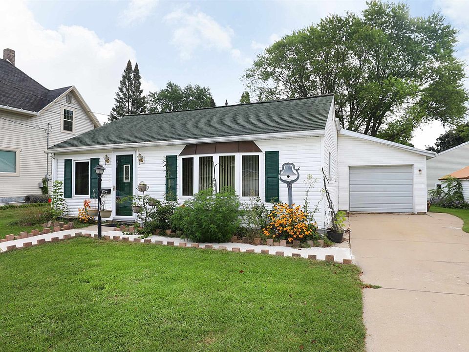Conveniently located within walking distance of the school you will find this ready to move in 3 bedroom 1 bath home. Open concept living room, dining area, and kitchen with simulated wood floors flowing throughout. Living room features a large bay window bringing in lots of natural light. Peninsula separating dining area from kitchen. Ample cabinet space with appliance package included. Entryway off the attached one car garage could be a possible mud room area. First floor laundry, utility room, 3 bedrooms and full bath completes this home.