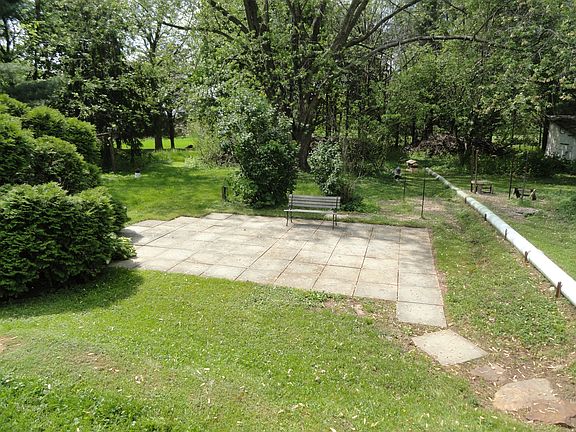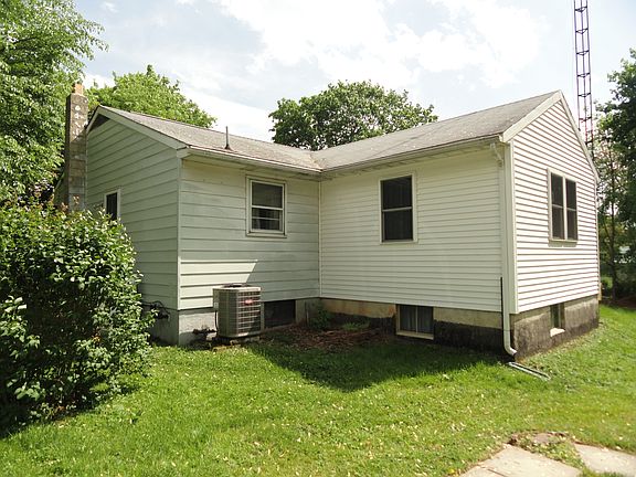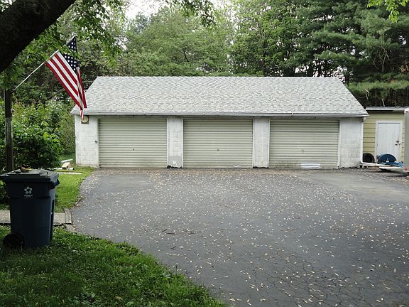 Affordable & Move-in Ready! A charming & very spacious rancher with over half an acre of land, sitting privately on a quiet lot lined with trees and a beautiful stone patio in the back yard. This delightful home has ample space with three true bedrooms on the main floor with new ceiling fans in all rooms and beautiful original hardwood flooring throughout. The gorgous main floor provides beautiful hardwood flooring, from the entrance through the living room, dining room, and family room, and has been well preserved. With a full size basement with a partially finished area, there is more than enough storage space aside from the walk-up attic and extra room for guest. The bathroom is newly renovated with tile flooring and newly installed toilet and painted walls. The kitchen is a very nice cook-in kitchen and provides plenty of space with a fairly new refrigerator which is included. Aside from the well preserved home, there is a very large, detached 3 car garage (1,000 sqft) that is heated and has upstairs access for much more space. Come see this beautiful home, in this great location , for a great price!