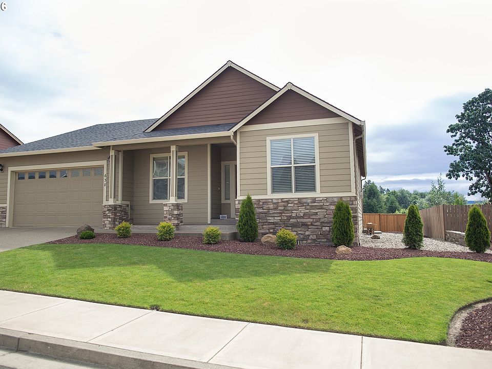 Stunning one level custom home in the sought after Carlton Crest neighborhood! Gourmet island kitchen with slab granite countertops, 42" cherry cabinets and large walk-in pantry. Beautiful solid oak hardwood floors, fireplace, vaulted living room and master bedroom. Both bathrooms feature tile showers and spacious soaker tubs. Air conditioning, covered patio with trex deck, custom concrete patio and irrigation.