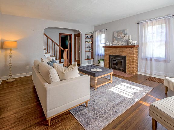 Welcome home to this enchanting 3bed/1.5bath/1car beauty in quiet Country Overlook neighborhood, just east of Sleepy Hollow. This home has excellent curb appeal, accented with an almost full brick exterior, covered front porch, and lush landscaping. Inside, you'll discover modern updates blended with the charm of the era during which this home was built. Original dark hardwood floors in excellent condition greet you upon entry. Arched doorways, leaded glass, and large windows add to the home's appeal. A large living room with a brick-faced fireplace flows seamlessly to an open formal dining space. Directly adjacent is the remodeled kitchen, offering white cabinetry with updated hardware, reach-in pantry, a full set of appliances for the buyer's convenience, granite counter tops, under mount sink, eye-catching exposed brick accents, and an island with flat top range and hood. An adjoining breakfast nook or seating area overlooks the rear deck. Completing the main level is a dedicated office space that could double as an additional bedroom, and a delightful half bath. Upstairs, you'll find that the primary bedroom enjoys two closets, while both additional bedrooms are bright and cheerful. The full hall bath boasts an original stone floor and shower/tub combo. Downstairs, you'll find an unfinished basement divided into two separate spaces - one for laundry/mechanical equipment, and one for storage or workshop. Current cabinetry in the basement will remain with the sale. Mechanical updates include a 4-year-old HVAC system, updated electrical panel, and partially-replaced sewer line. Exterior amenities consist of a fully-fenced yard with rear deck, detached garage, and dog run. This home sits in a quiet neighborhood close to restaurants, parks, golf, and gas. They're going fast in this price range. Come see us today before it's gone! *See the promo and Matterport videos for additional views of this property.*