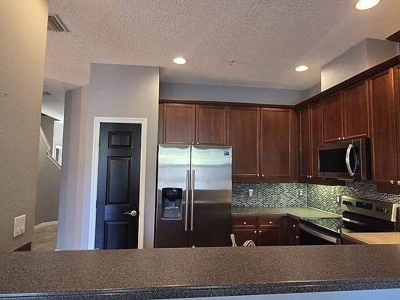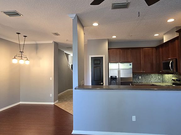 Townhome rental in the Gated Community of Barclay Reserve! Zoned for Great Seminole County Schools! This 3 Bedroom, 2 1/2 Townhome in the Gated Winter Springs community of Barclay Reserve located on 434 near the 417 toll, close to UCF and the new Oviedo on the Park area. Kitchen features stainless appliances, solid surface counters, tile backsplash, under cabinet lighting, breakfast bar and pantry. Great room opens to extended private patio and has laminate wood flooring and upgraded fan and light fixtures. Flexible plan with plenty of room for a large great room or combined dining and family room plus room for a table near kitchen. Upstairs bedrooms all have carpet. Master bedroom has a large walk-in closet with built-in closet system for maximum storage potential. Master bath with two sinks, tub/shower combo and separate water closet. Split plan places other two bedrooms and bathroom at the other end of the hall. Laundry room has been completely remodeled to include wood tile floor, cabinets and a stylish barn door entry. Other upgrades include new high efficiency 15 SEER A/C (2022), newer Range ad Dishwasher (2022), newer Washer (2024) crown molding on first floor, 42 in kitchen cabinets, and newer water heater. One car attached garage with epoxy finished floor and overhead shelving and bike hangers. Garage door is insulated which helps regulate garage temperature. Appliances included: Range (September 2022), Microwave, Refrigerator, Dishwasher (September 2022), Washer (2024), Dryer and Disposal. One car garage. Utilities shall be paid by Tenant. (HOA paid by Landlord) First month rent and security deposit required prior to move in. Application for credit and background check required.