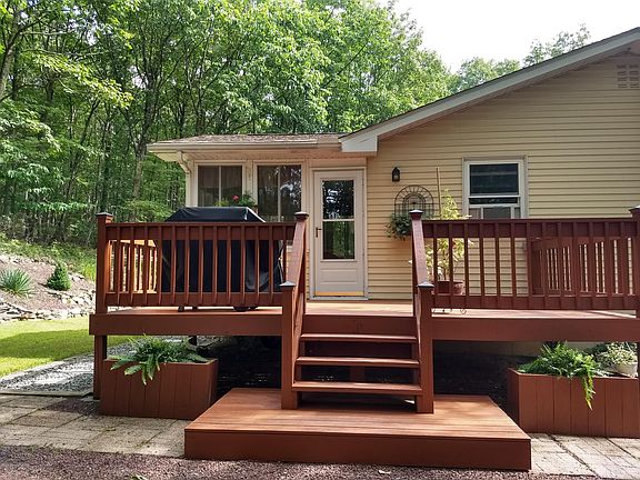 Private-Peaceful-Perfect! Attention Nature Lovers, Don't miss a Look at this 3 Bedroom 2 Bath Ranch, move in condition on a full acre, with Oak Hardwood Floors, Stone Fireplace, Beautiful Heated 4 Season Room off the Dining room, Fully Finished Lower Level with wood free standing stove, Family Room, office, full bath, room plumbed for Hot Tub. Ample Closets for storage. 1 Car Garage, Shed, Deck for entertaining. Property backs up to Forest open Space, your Quiet retreat awaits. 14 miles to Beltzville Lake, Close to Camelback, Blue Mt, Jack Frost, Big Boulder, Split Rock, Pocono Race way. Low Taxes!!!!!!!!!!!!!!