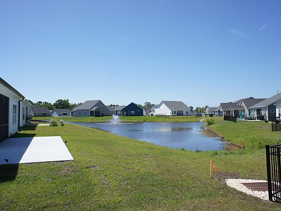 Beautiful Topsail floor plan in the Ocean Palms community with a view of the pond. This terrific open floor plan, 3 bedroom, 2 full bath home has wood-look LVP flooring throughout - no carpet. Stainless appliances, staggered-height white painted Shaker-style cabinetry and a marble-look quartz breakfast bar combine to give you the wow factor you're looking for. Abundant recessed lighting plus two large windows in the adjacent dining area and two accent windows flood the room with light. A French door in the great room leads to the huge rear porch, which extends behind the owner's suite, and separate patio beyond. The spacious owner's retreat features a long vanity with dual undermount sinks in a quartz counter, an oversized walk-in shower, plenty of storage in the linen closet and 2 huge walk-in closets, plus a tray ceiling. Another set of double French doors from the owner's retreat also leads to the covered rear porch, and two accent windows will frame the location of your bed. Two additional bedrooms and a full bath are tucked off on their own hallway, for privacy. All of the homes in Ocean Palms come standard with the luxury of natural gas (tankless water heater, gas heat, and gas range). The two car garage is completely trimmed and painted, and a floored attic storage space is accessed by drop-down stairs. Ocean Palms is conveniently located near shopping, restaurants, schools and world class medical offices and hospitals, and only a short golf cart ride to Surfside Beach's gorgeous beach and the beautiful Atlantic Ocean. Other floor plans and inventory homes may be available. Community Pool and cabana!