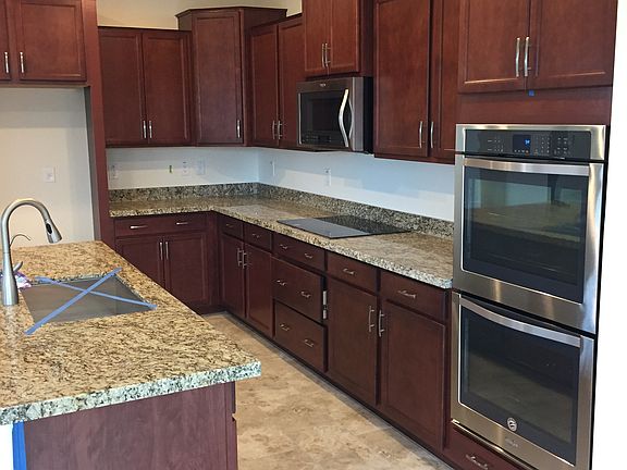 4 bedroom, 3 bath split floor plan. "Children's wing" has 2 bedrooms, bathroom, media nook, and living room. Master with separate tub/shower and two walk-in closets. Guest bedroom and bath are away from other bedrooms. 3 car random garage. Kitchen has beautiful granite, flat cooktop, and double ovens.