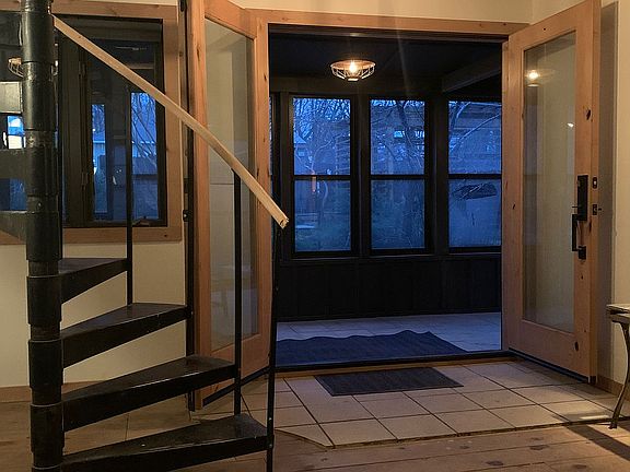 Classic Longfellow home with second, detached dwelling. Front house: Built in 1890, full of original charm as well as updates like high efficiency central air. New five burner range in kitchen. Full laundry in basement, which occupies entire sq footage of house footprint, including under the front porch. First floor comprised of living room, dining, kitchen and one bedroom with en suit suite bathroom (tile shower). Second floor has 14 foot vaulted ceilings in upstairs office/second living room as well as upstairs master bedroom. Upstairs full bath includes skirted, cast iron tub/shower. Large brick driveway lined with huge arborvitae easily accommodates three cars. Fully landscaped front yard full of mature ground cover and brick patio. Roof water runoff channeled to front yard plant life via underground drain tile. Back House: Converted barn with Japanese modern touches. Very private from front house and neighborhood due to fencing, trees and shrubs. Heavily landscaped with mature trees, shrubs, plant life, rock garden, small orchard, raised bed vegetable garden, large shed (potential teahouse or sauna), covered pergola, and stone pathways. Large east facing three seasons porch with four inch thick limestone floor. French doors from porch open for terrific summer breezes through open floor plan interior. Solid hickory kitchen and laundry cabinets against concrete "backsplash" wall. New appliances imported from Germany. Designer window treatments. Library ladder to elevated bookshelves. Clawfoot tub/shower, tile and concrete walls in modern bath with peaked, cedar clad ceiling. A modern sliding door shutters the first floor bedroom. Large, open, modern closet and TV niche in bedroom. 15 foot ceiling in first floor foyer/office/living space. Spiral staircase to second floor loft. Loft is lined with custom shelving on wheels and is a perfect second bedroom, living room or office. Heated and cooled with super quiet, efficient baseboard heaters and high efficiency mini split mounted close to peak.
